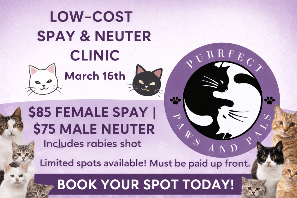 At Purrfect Paws and Pals, we believe in the power of community to make a positive impact on the lives of pets and pet parents. Join our community of pet lovers dedicated to providing love, care, and support to cats in our community. We have spayed and neutered over 900 cats to date and have fostered and found homes for almost 350 friendly felines since starting our mission in 2019. Help us continue to help more.